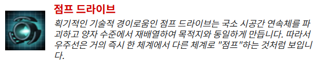 이를 함선에 탑재해 하이퍼레인과 무관하게 정해진 범위 안의 임의 위치로 즉시 이동할 수 있다.