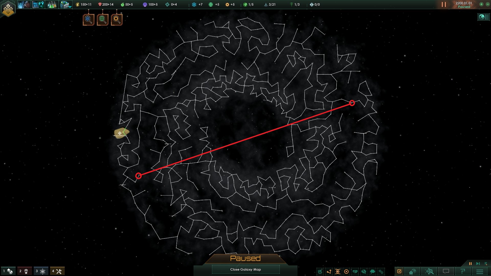 게임은 플레이어의 종족이 초공간 향해(Hyperspace Travel)을 개발한 직후부터 시작된다.